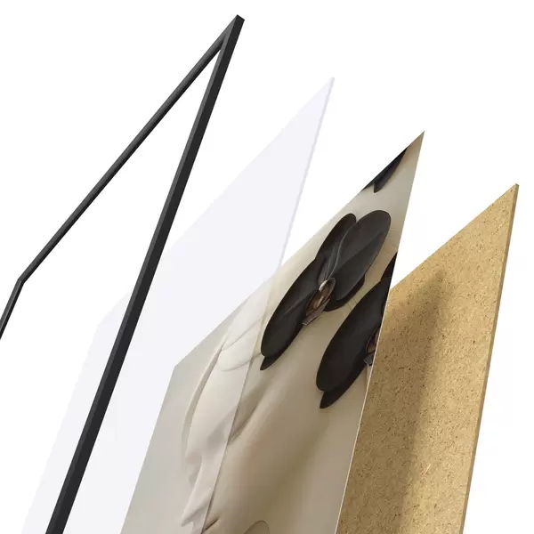 Plagát sa skladá z rámu, plexiskla, vytlačeného obrazu a podkladu z drevotriesky. Plagát možno okamžite zavesiť na stenu vďaka úchytom na zadnej strane.