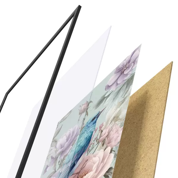 Plagát sa skladá z rámu, plexiskla, vytlačeného obrazu a podkladu z drevotriesky. Plagát možno okamžite zavesiť na stenu vďaka úchytom na zadnej strane.