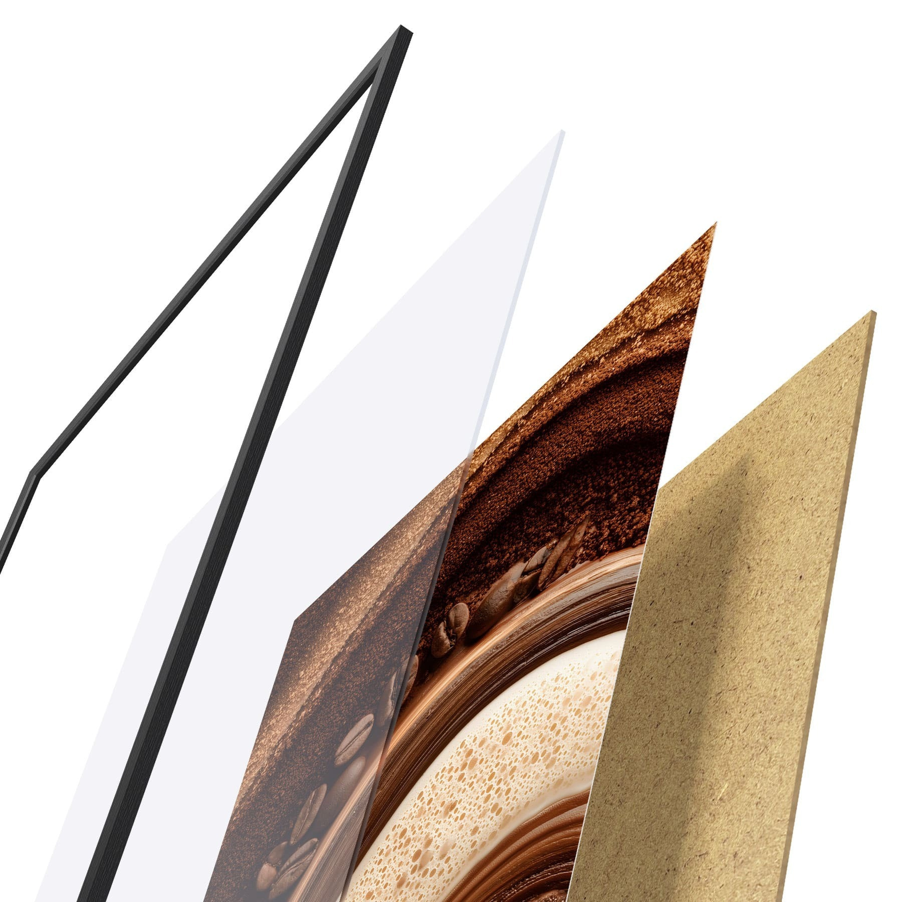 Plagát sa skladá z rámu, plexiskla, vytlačeného obrazu a podkladu z drevotriesky. Plagát možno okamžite zavesiť na stenu vďaka úchytom na zadnej strane.