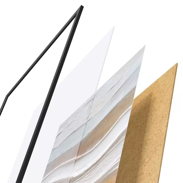 Plagát sa skladá z rámu, plexiskla, vytlačeného obrazu a podkladu z drevotriesky. Plagát možno okamžite zavesiť na stenu vďaka úchytom na zadnej strane.