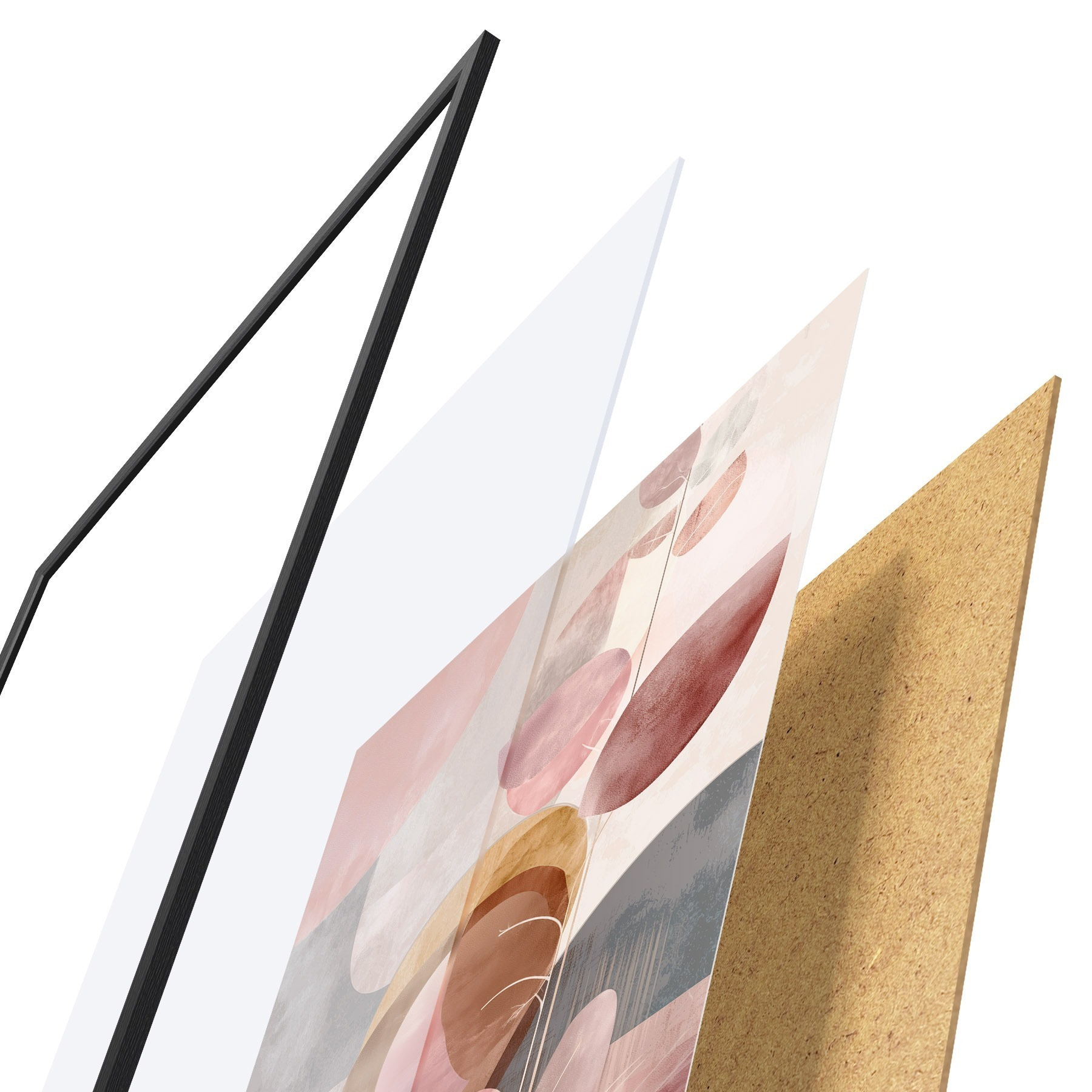 Plagát sa skladá z rámu, plexiskla, vytlačeného obrazu a podkladu z drevotriesky. Plagát možno okamžite zavesiť na stenu vďaka úchytom na zadnej strane.