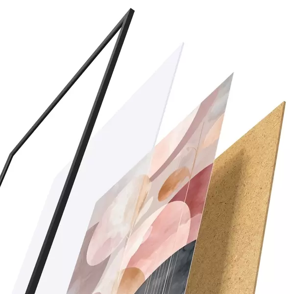 Plagát sa skladá z rámu, plexiskla, vytlačeného obrazu a podkladu z drevotriesky. Plagát možno okamžite zavesiť na stenu vďaka úchytom na zadnej strane.