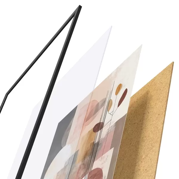 Plagát sa skladá z rámu, plexiskla, vytlačeného obrazu a podkladu z drevotriesky. Plagát možno okamžite zavesiť na stenu vďaka úchytom na zadnej strane.