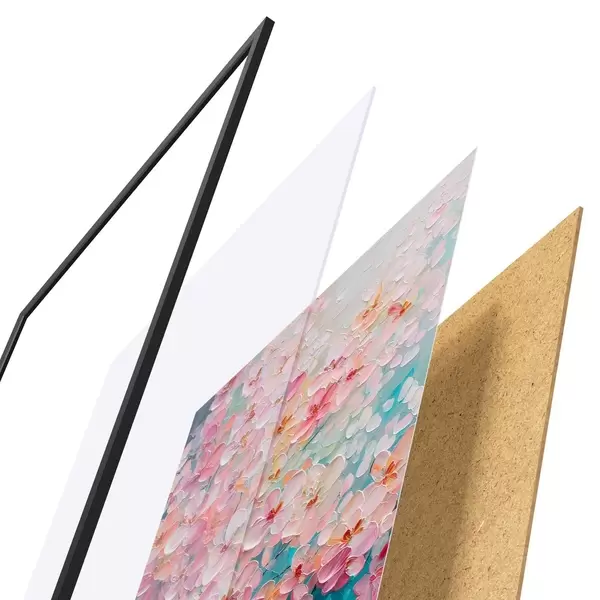 Plagát sa skladá z rámu, plexiskla, vytlačeného obrazu a podkladu z drevotriesky. Plagát možno okamžite zavesiť na stenu vďaka úchytom na zadnej strane.