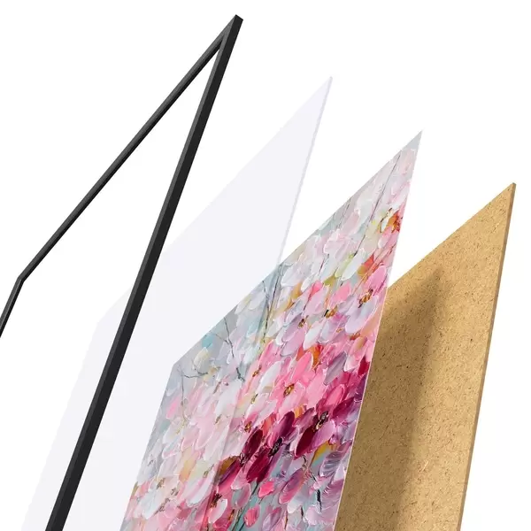 Plagát sa skladá z rámu, plexiskla, vytlačeného obrazu a podkladu z drevotriesky. Plagát možno okamžite zavesiť na stenu vďaka úchytom na zadnej strane.