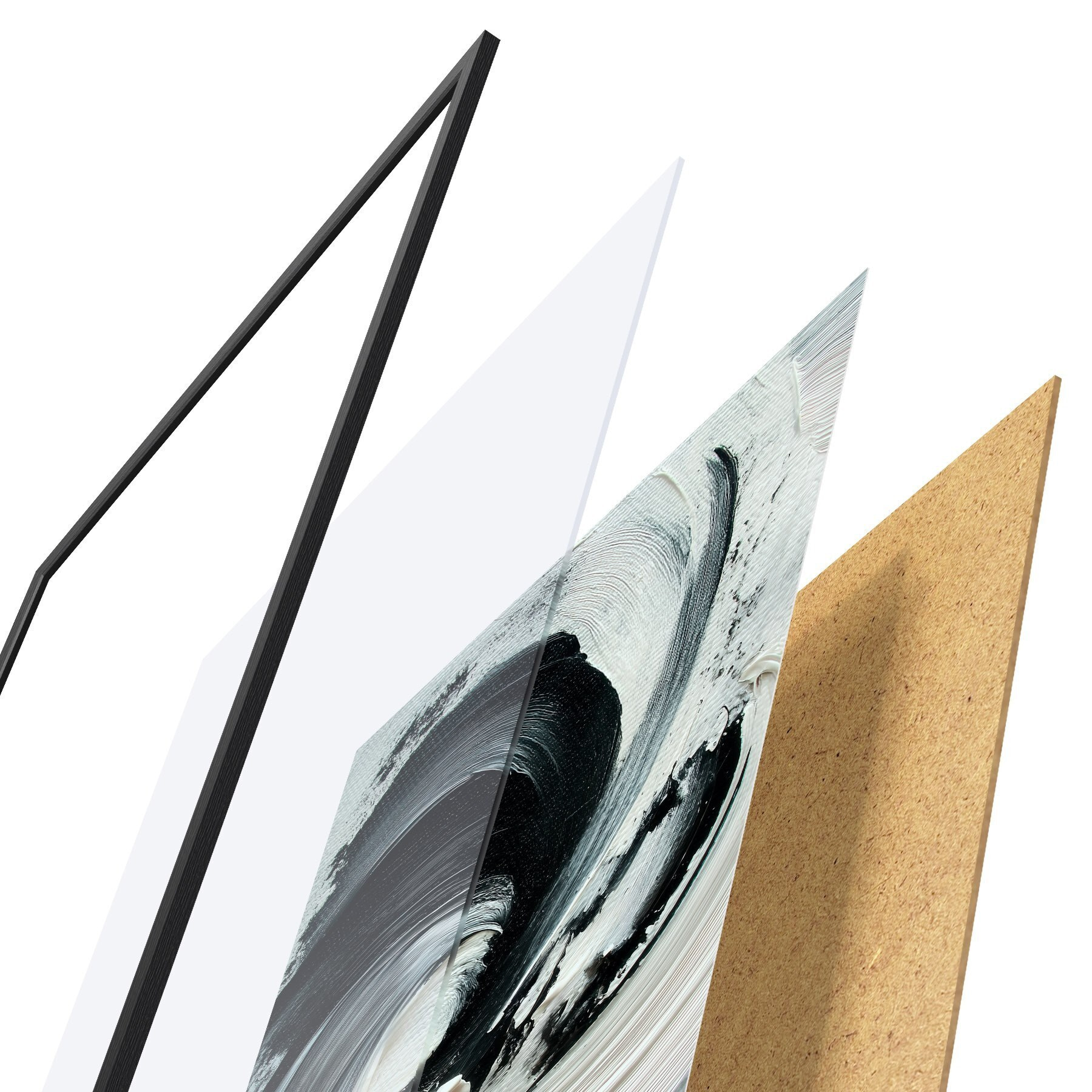 Plagát sa skladá z rámu, plexiskla, vytlačeného obrazu a podkladu z drevotriesky. Plagát možno okamžite zavesiť na stenu vďaka úchytom na zadnej strane.