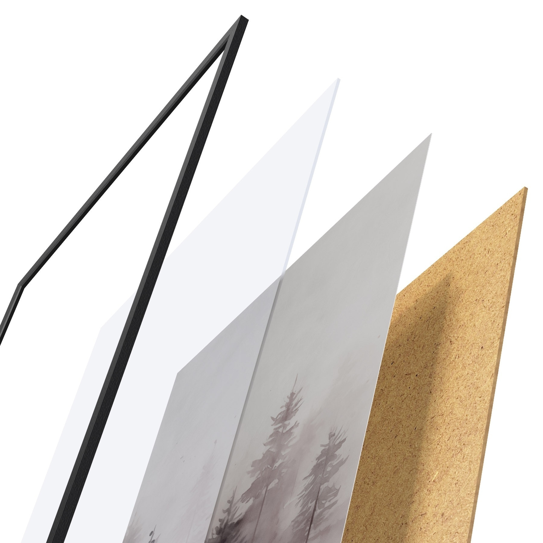 Plagát sa skladá z rámu, plexiskla, vytlačeného obrazu a podkladu z drevotriesky. Plagát možno okamžite zavesiť na stenu vďaka úchytom na zadnej strane.