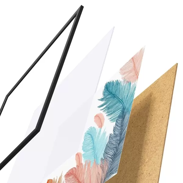 Plagát sa skladá z rámu, plexiskla, vytlačeného obrazu a podkladu z drevotriesky. Plagát možno okamžite zavesiť na stenu vďaka úchytom na zadnej strane.