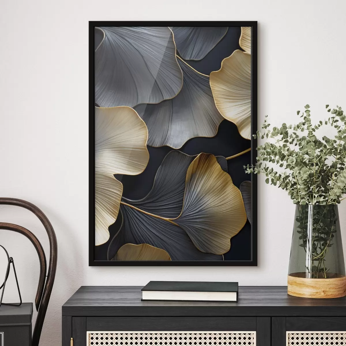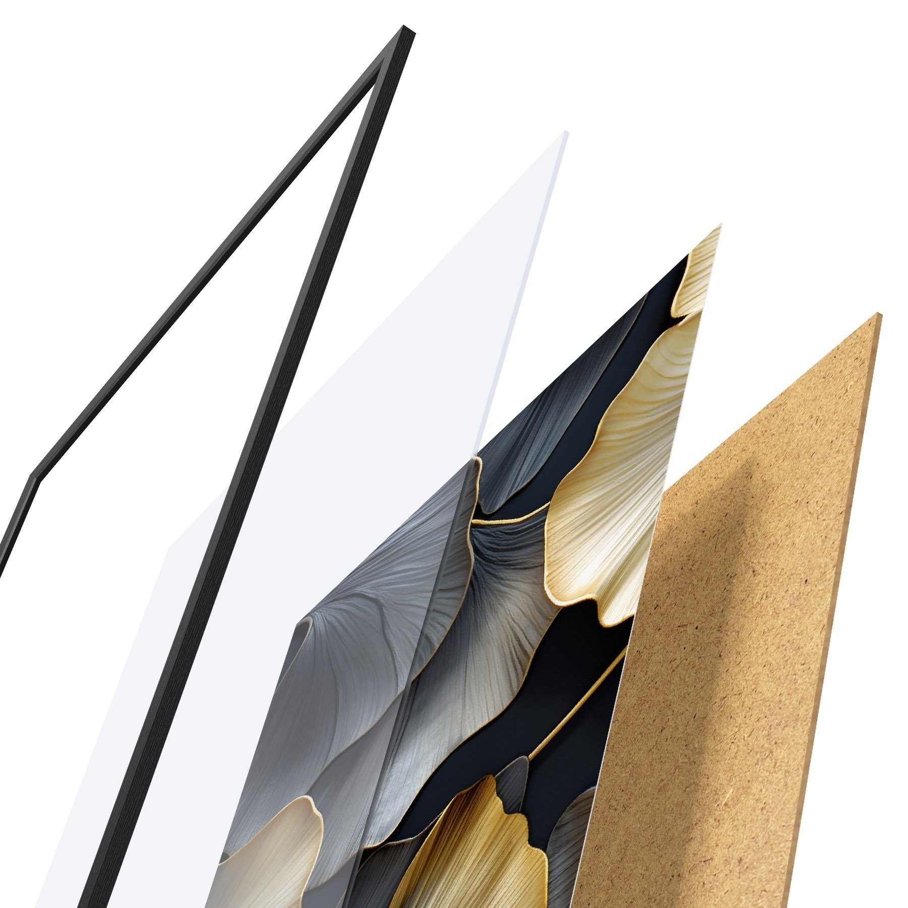 Plagát sa skladá z rámu, plexiskla, vytlačeného obrazu a podkladu z drevotriesky. Plagát možno okamžite zavesiť na stenu vďaka úchytom na zadnej strane.