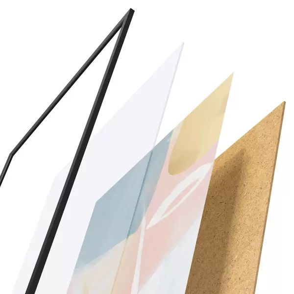 Plagát sa skladá z rámu, plexiskla, vytlačeného obrazu a podkladu z drevotriesky. Plagát možno okamžite zavesiť na stenu vďaka úchytom na zadnej strane.