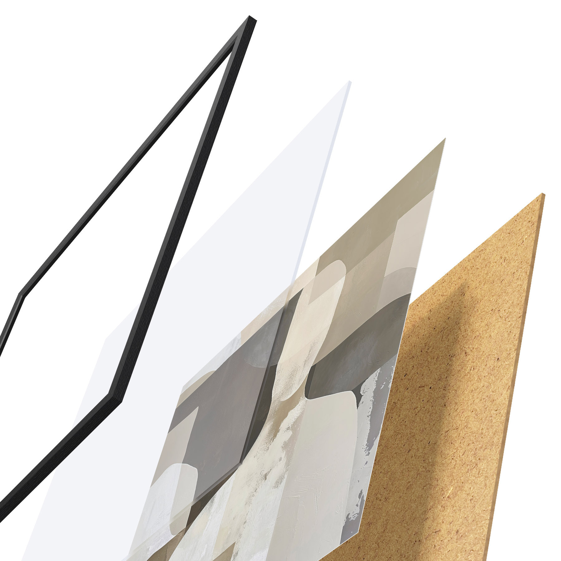 Plagát sa skladá z rámu, plexiskla, vytlačeného obrazu a podkladu z drevotriesky. Plagát možno okamžite zavesiť na stenu vďaka úchytom na zadnej strane.