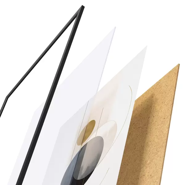 Plagát sa skladá z rámu, plexiskla, vytlačeného obrazu a podkladu z drevotriesky. Plagát možno okamžite zavesiť na stenu vďaka úchytom na zadnej strane.