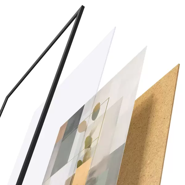 Plagát sa skladá z rámu, plexiskla, vytlačeného obrazu a podkladu z drevotriesky. Plagát možno okamžite zavesiť na stenu vďaka úchytom na zadnej strane.