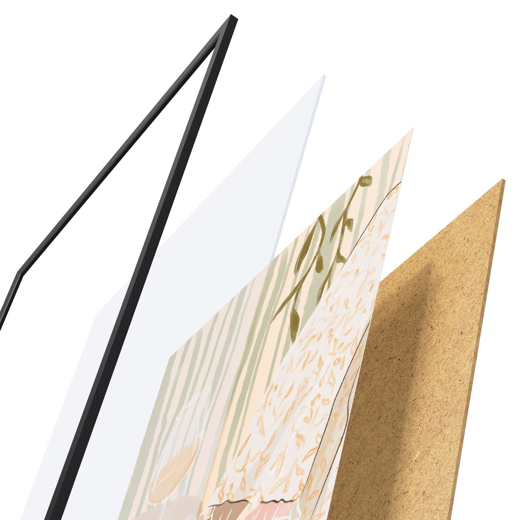 Plagát sa skladá z rámu, plexiskla, vytlačeného obrazu a podkladu z drevotriesky. Plagát možno okamžite zavesiť na stenu vďaka úchytom na zadnej strane.