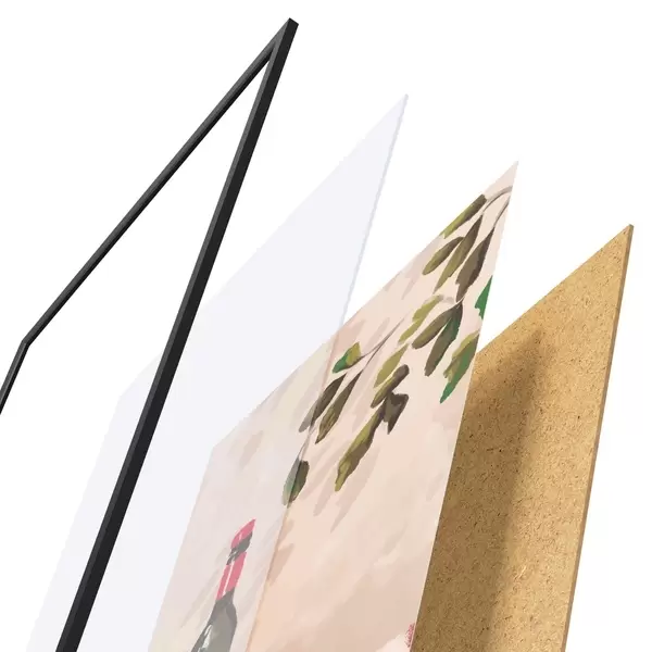 Plagát sa skladá z rámu, plexiskla, vytlačeného obrazu a podkladu z drevotriesky. Plagát možno okamžite zavesiť na stenu vďaka úchytom na zadnej strane.