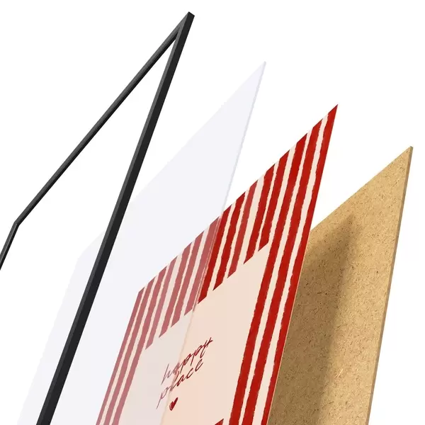 Plagát sa skladá z rámu, plexiskla, vytlačeného obrazu a podkladu z drevotriesky. Plagát možno okamžite zavesiť na stenu vďaka úchytom na zadnej strane.