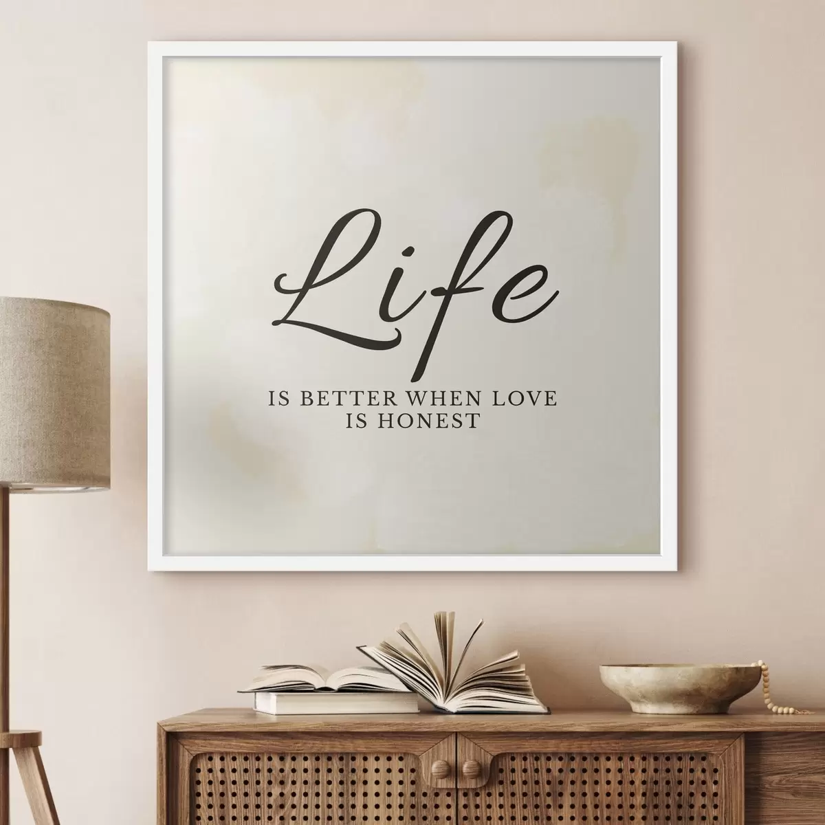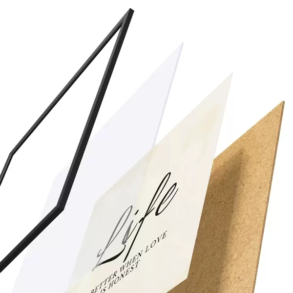 Plagát sa skladá z rámu, plexiskla, vytlačeného obrazu a podkladu z drevotriesky. Plagát možno okamžite zavesiť na stenu vďaka úchytom na zadnej strane.