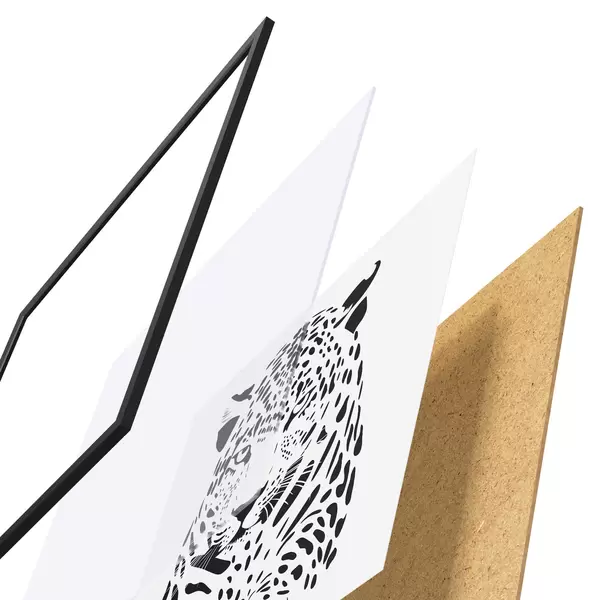 Plagát sa skladá z rámu, plexiskla, vytlačeného obrazu a podkladu z drevotriesky. Plagát možno okamžite zavesiť na stenu vďaka úchytom na zadnej strane.