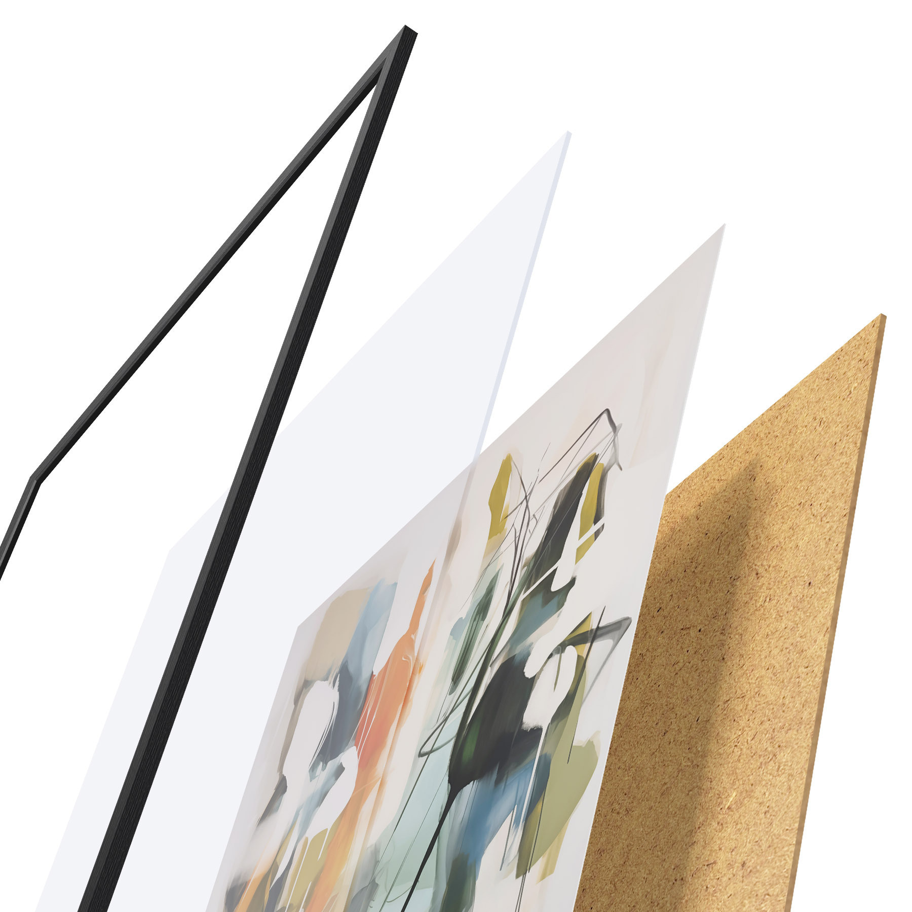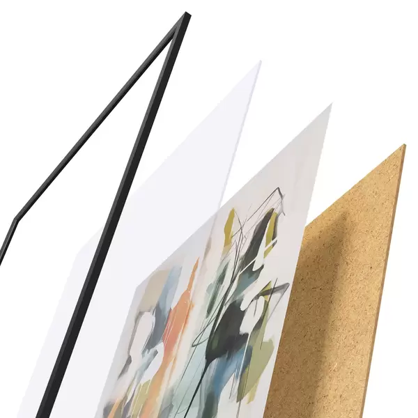 Plagát sa skladá z rámu, plexiskla, vytlačeného obrazu a podkladu z drevotriesky. Plagát možno okamžite zavesiť na stenu vďaka úchytom na zadnej strane.