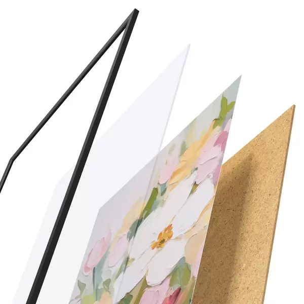 Plagát sa skladá z rámu, plexiskla, vytlačeného obrazu a podkladu z drevotriesky. Plagát možno okamžite zavesiť na stenu vďaka úchytom na zadnej strane.