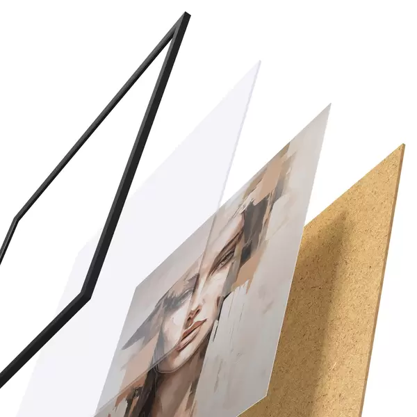 Plagát sa skladá z rámu, plexiskla, vytlačeného obrazu a podkladu z drevotriesky. Plagát možno okamžite zavesiť na stenu vďaka úchytom na zadnej strane.