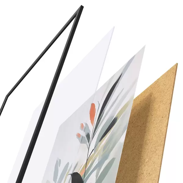 Plagát sa skladá z rámu, plexiskla, vytlačeného obrazu a podkladu z drevotriesky. Plagát možno okamžite zavesiť na stenu vďaka úchytom na zadnej strane.