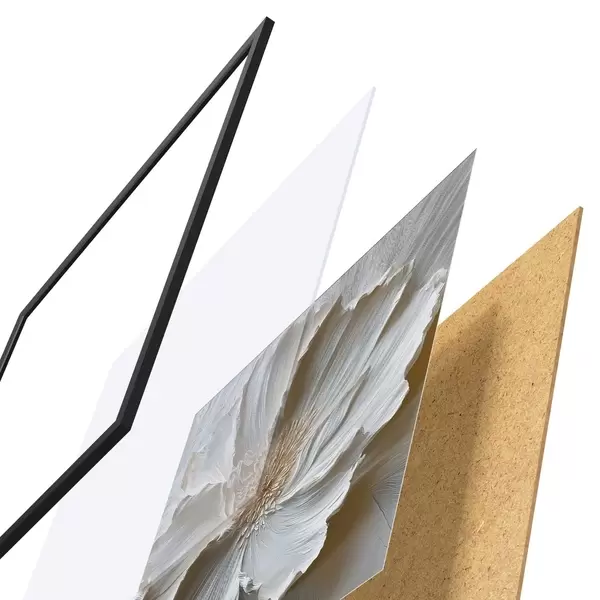 Plagát sa skladá z rámu, plexiskla, vytlačeného obrazu a podkladu z drevotriesky. Plagát možno okamžite zavesiť na stenu vďaka úchytom na zadnej strane.
