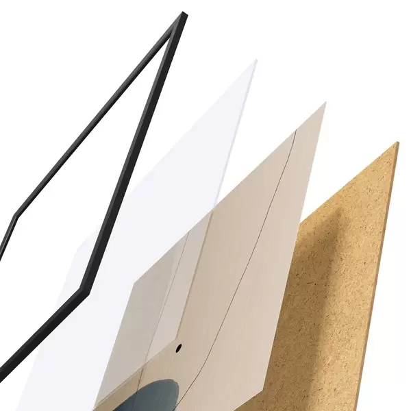 Plagát sa skladá z rámu, plexiskla, vytlačeného obrazu a podkladu z drevotriesky. Plagát možno okamžite zavesiť na stenu vďaka úchytom na zadnej strane.