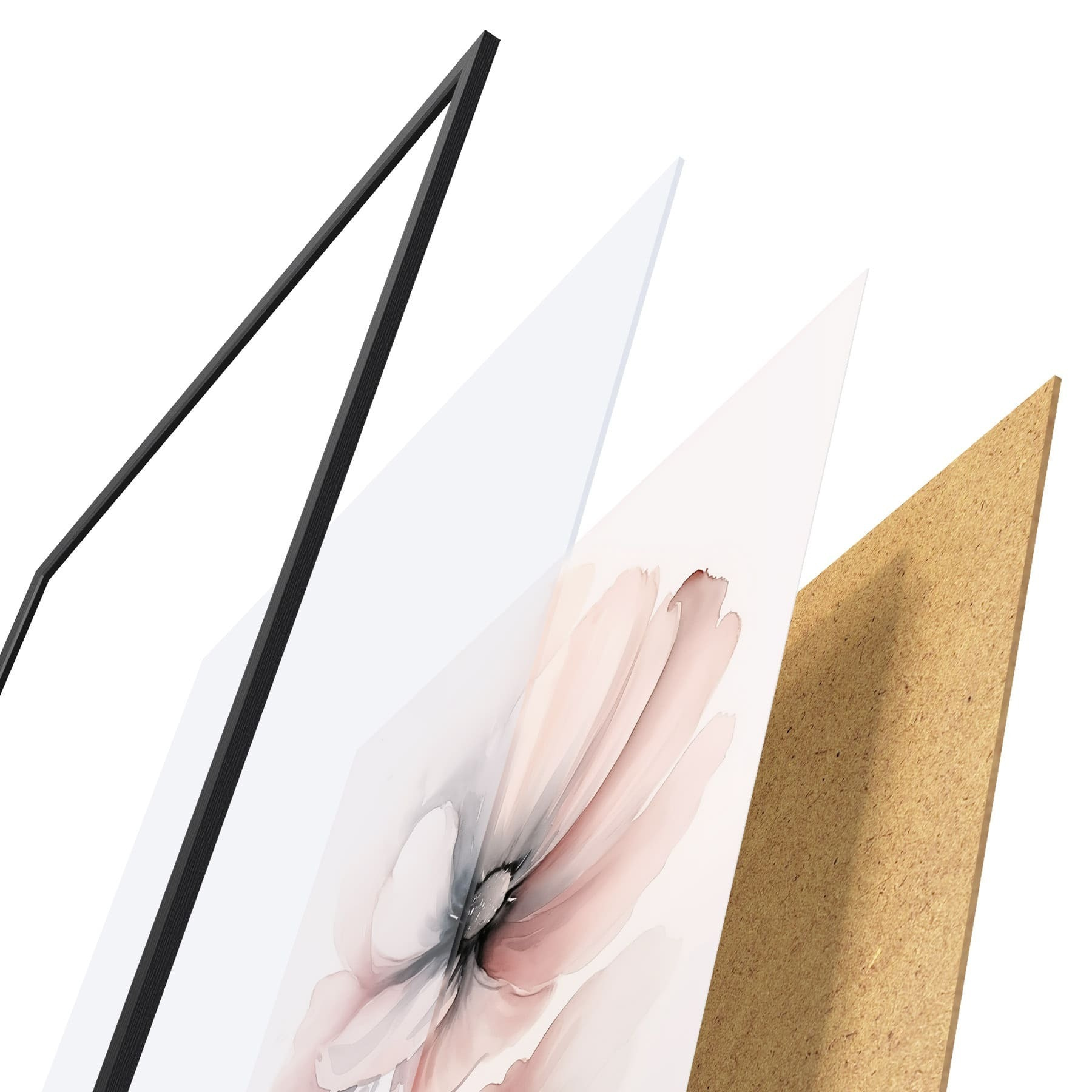 Plagát sa skladá z rámu, plexiskla, vytlačeného obrazu a podkladu z drevotriesky. Plagát možno okamžite zavesiť na stenu vďaka úchytom na zadnej strane.