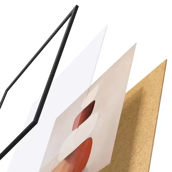 Plagát sa skladá z rámu, plexiskla, vytlačeného obrazu a podkladu z drevotriesky. Plagát možno okamžite zavesiť na stenu vďaka úchytom na zadnej strane.