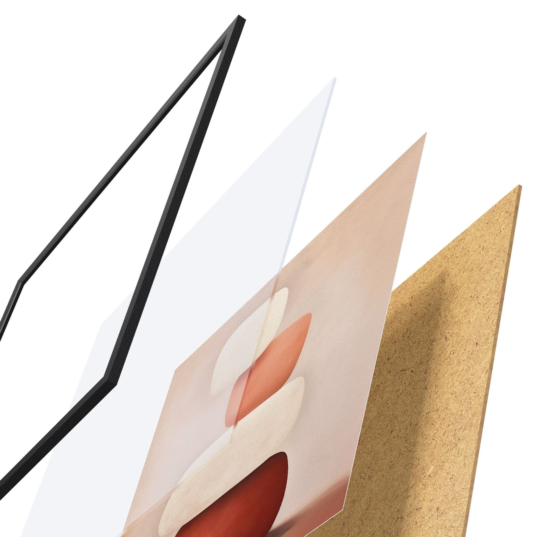 Plagát sa skladá z rámu, plexiskla, vytlačeného obrazu a podkladu z drevotriesky. Plagát možno okamžite zavesiť na stenu vďaka úchytom na zadnej strane.
