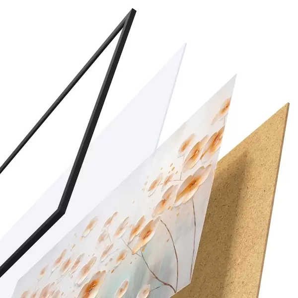 Plagát sa skladá z rámu, plexiskla, vytlačeného obrazu a podkladu z drevotriesky. Plagát možno okamžite zavesiť na stenu vďaka úchytom na zadnej strane.