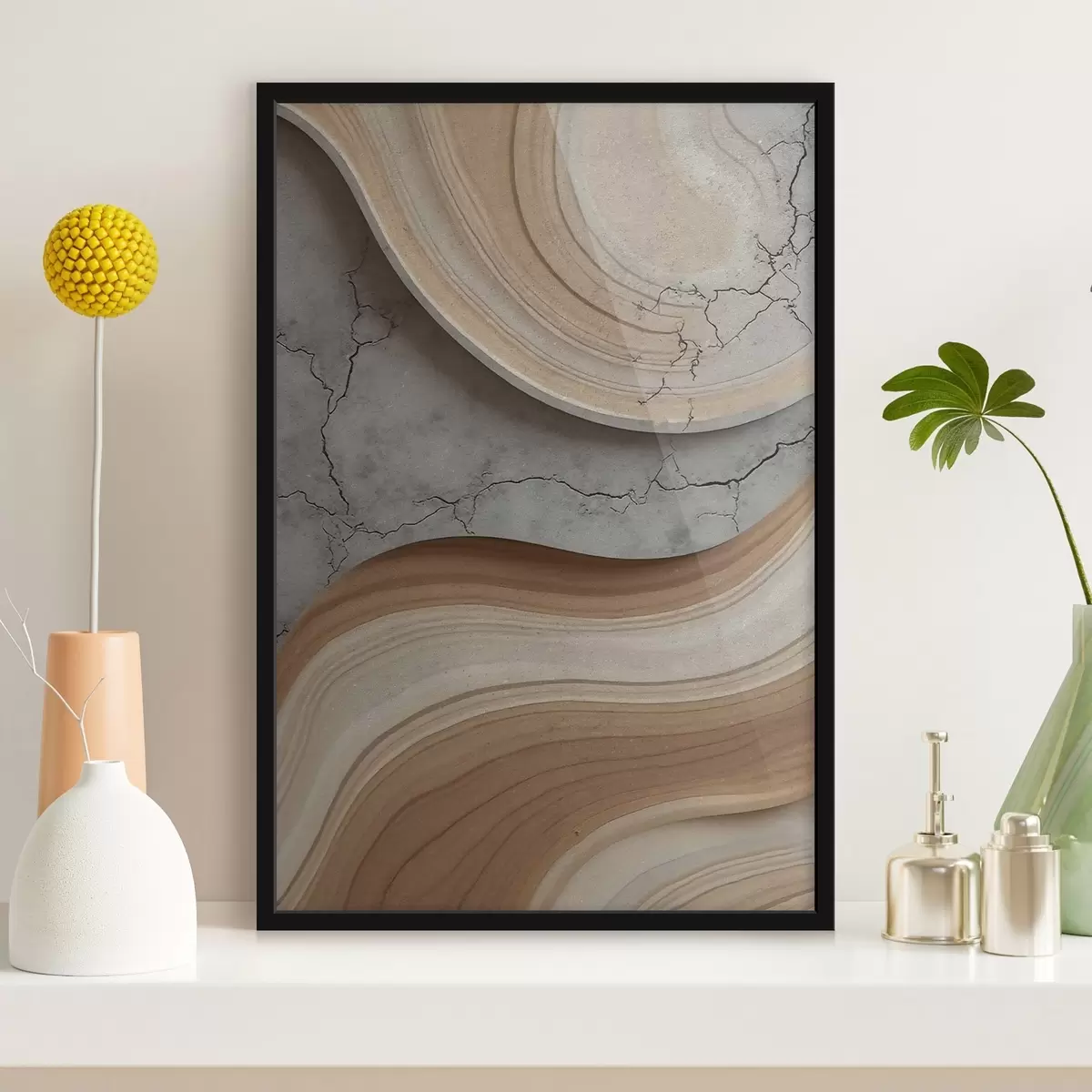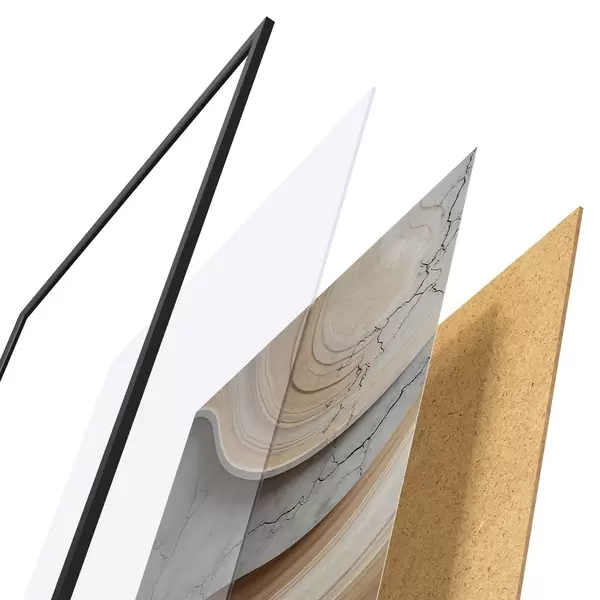 Plagát sa skladá z rámu, plexiskla, vytlačeného obrazu a podkladu z drevotriesky. Plagát možno okamžite zavesiť na stenu vďaka úchytom na zadnej strane.