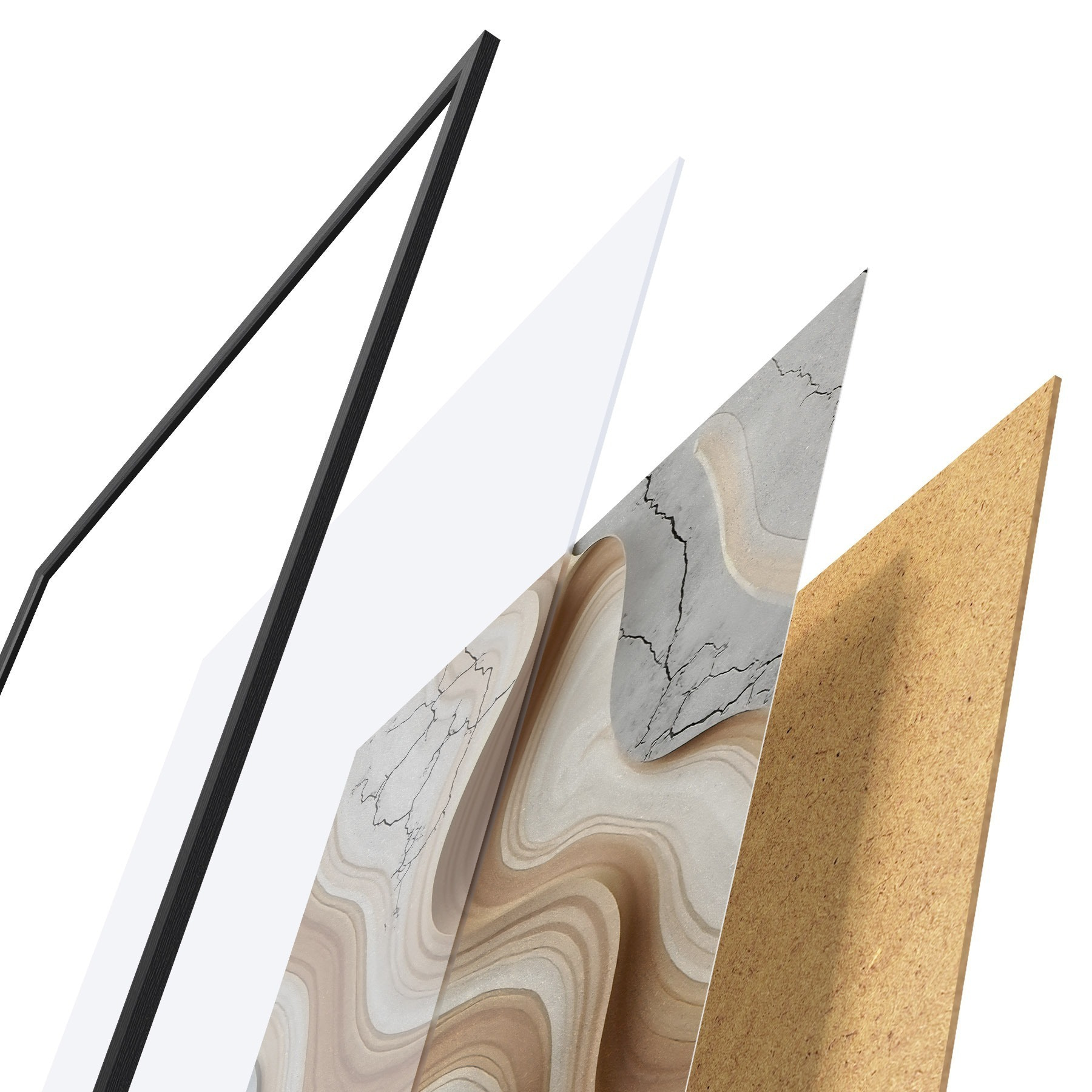 Plagát sa skladá z rámu, plexiskla, vytlačeného obrazu a podkladu z drevotriesky. Plagát možno okamžite zavesiť na stenu vďaka úchytom na zadnej strane.