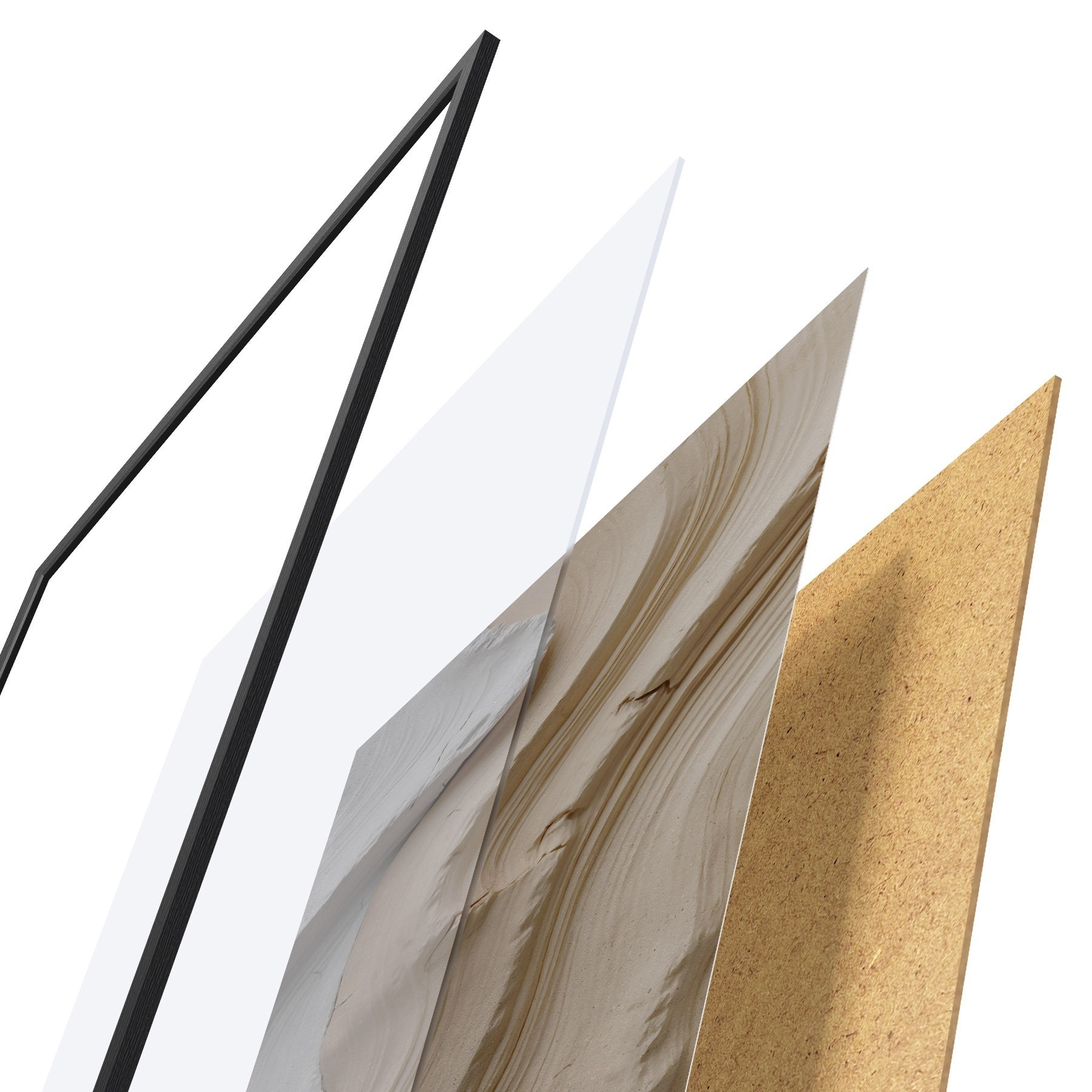 Plagát sa skladá z rámu, plexiskla, vytlačeného obrazu a podkladu z drevotriesky. Plagát možno okamžite zavesiť na stenu vďaka úchytom na zadnej strane.