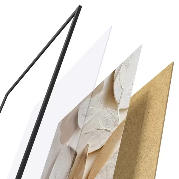 Plagát sa skladá z rámu, plexiskla, vytlačeného obrazu a podkladu z drevotriesky. Plagát možno okamžite zavesiť na stenu vďaka úchytom na zadnej strane.