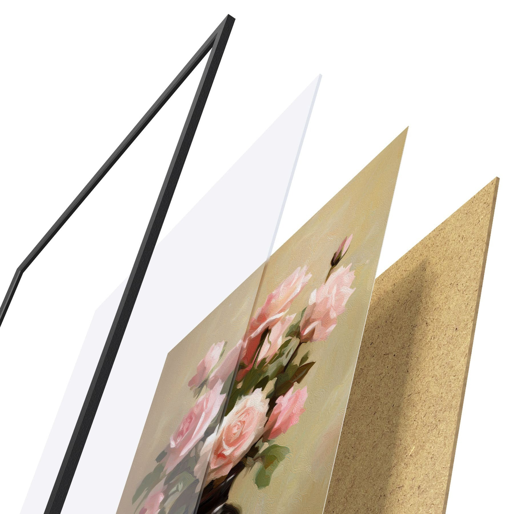 Plagát sa skladá z rámu, plexiskla, vytlačeného obrazu a podkladu z drevotriesky. Plagát možno okamžite zavesiť na stenu vďaka úchytom na zadnej strane.