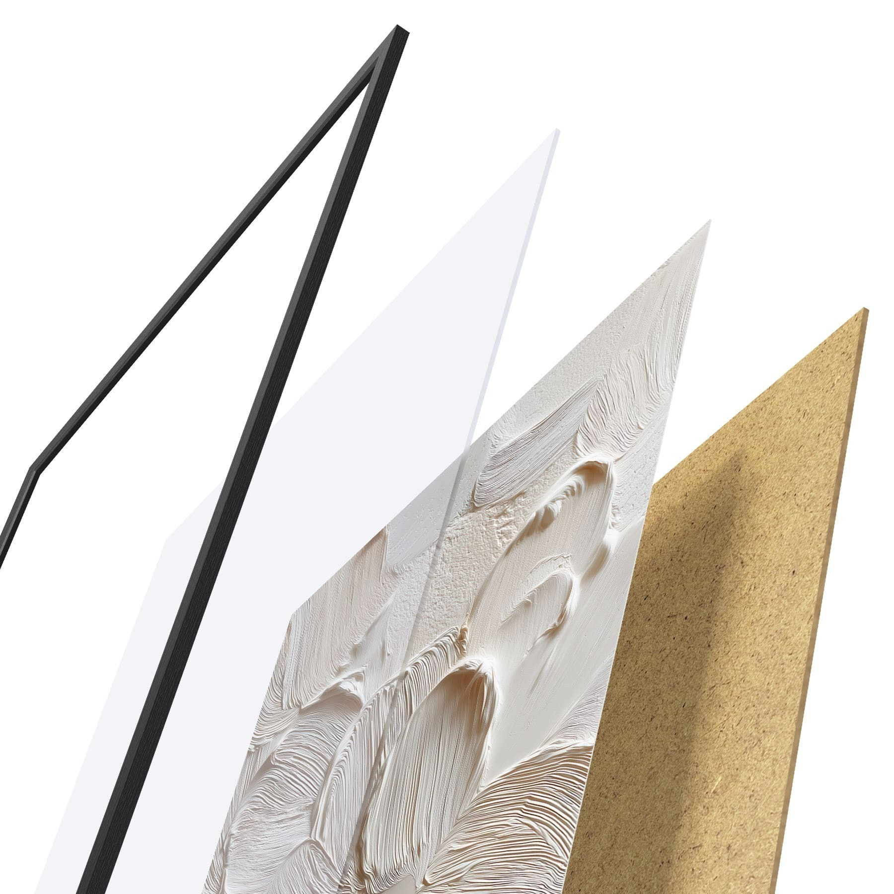Plagát sa skladá z rámu, plexiskla, vytlačeného obrazu a podkladu z drevotriesky. Plagát možno okamžite zavesiť na stenu vďaka úchytom na zadnej strane.