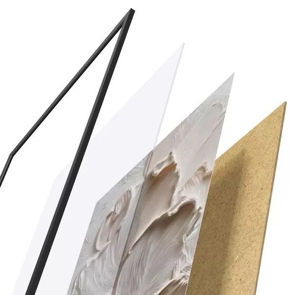 Plagát sa skladá z rámu, plexiskla, vytlačeného obrazu a podkladu z drevotriesky. Plagát možno okamžite zavesiť na stenu vďaka úchytom na zadnej strane.