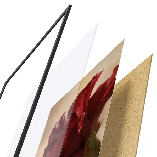Plagát sa skladá z rámu, plexiskla, vytlačeného obrazu a podkladu z drevotriesky. Plagát možno okamžite zavesiť na stenu vďaka úchytom na zadnej strane.