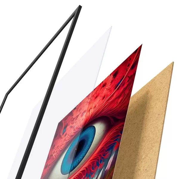 Plagát sa skladá z rámu, plexiskla, vytlačeného obrazu a podkladu z drevotriesky. Plagát možno okamžite zavesiť na stenu vďaka úchytom na zadnej strane.