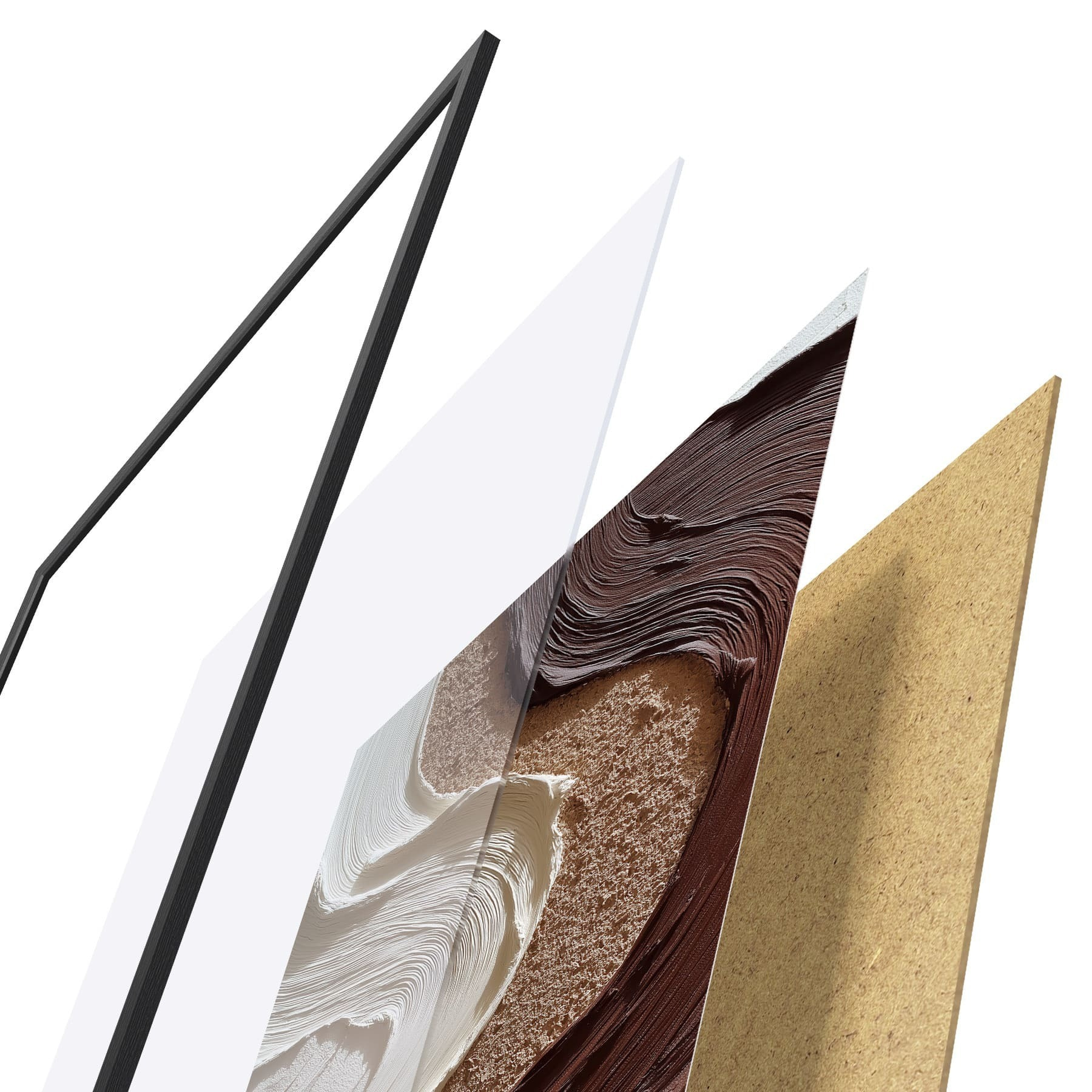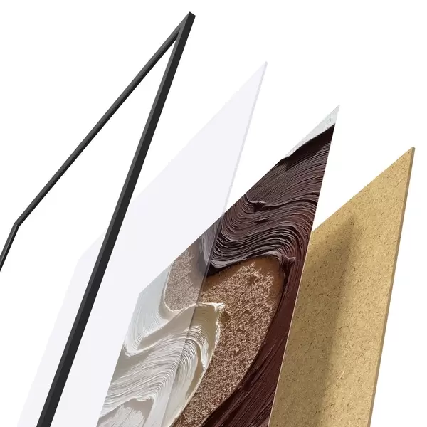 Plagát sa skladá z rámu, plexiskla, vytlačeného obrazu a podkladu z drevotriesky. Plagát možno okamžite zavesiť na stenu vďaka úchytom na zadnej strane.