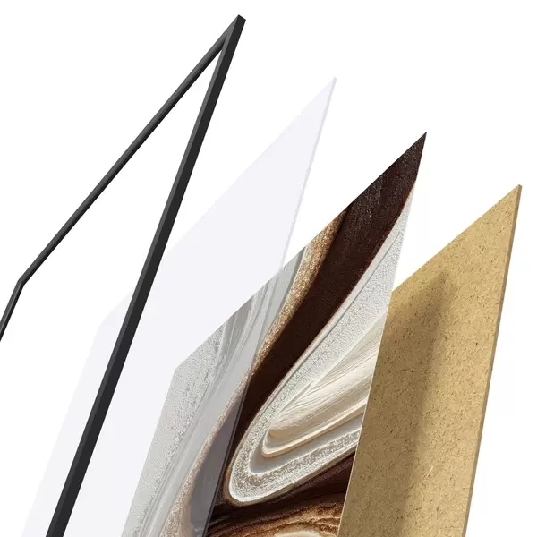 Plagát sa skladá z rámu, plexiskla, vytlačeného obrazu a podkladu z drevotriesky. Plagát možno okamžite zavesiť na stenu vďaka úchytom na zadnej strane.