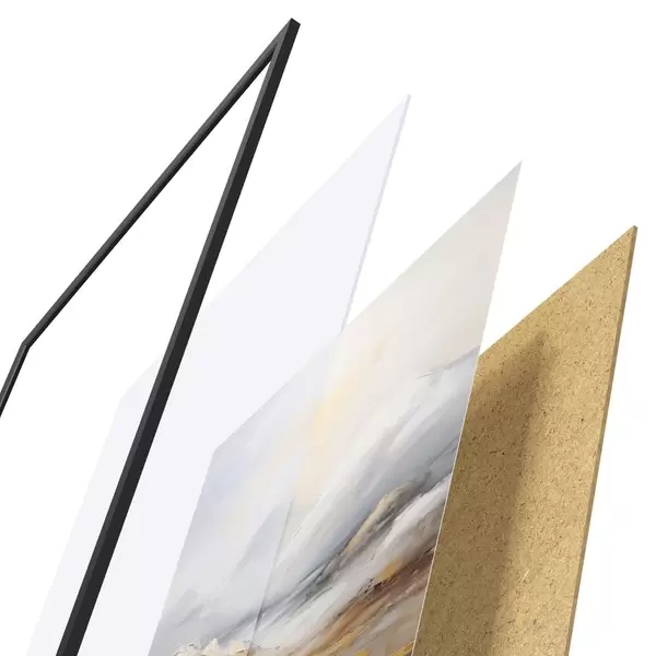 Plagát sa skladá z rámu, plexiskla, vytlačeného obrazu a podkladu z drevotriesky. Plagát možno okamžite zavesiť na stenu vďaka úchytom na zadnej strane.