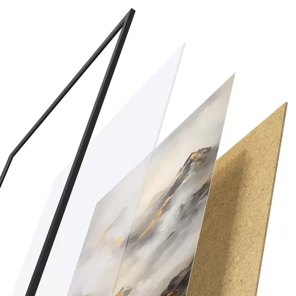 Plagát sa skladá z rámu, plexiskla, vytlačeného obrazu a podkladu z drevotriesky. Plagát možno okamžite zavesiť na stenu vďaka úchytom na zadnej strane.