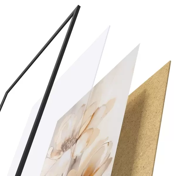 Plagát sa skladá z rámu, plexiskla, vytlačeného obrazu a podkladu z drevotriesky. Plagát možno okamžite zavesiť na stenu vďaka úchytom na zadnej strane.