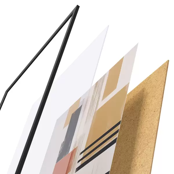 Plagát sa skladá z rámu, plexiskla, vytlačeného obrazu a podkladu z drevotriesky. Plagát možno okamžite zavesiť na stenu vďaka úchytom na zadnej strane.