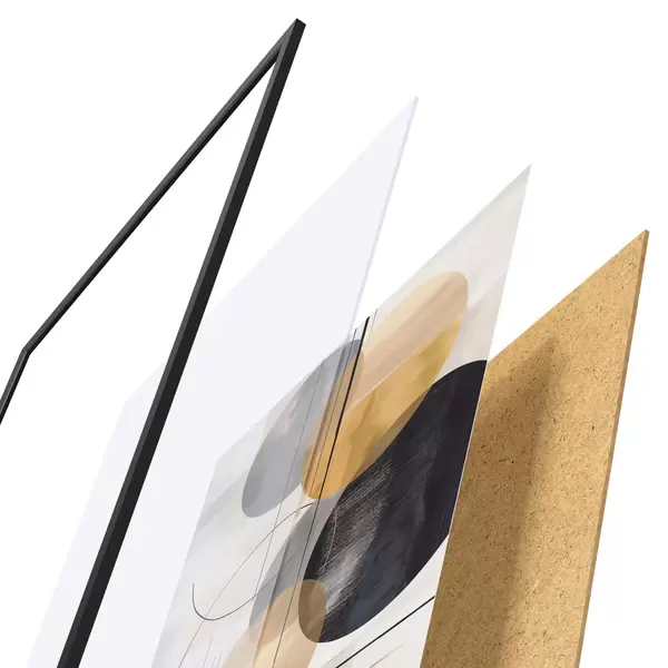 Plagát sa skladá z rámu, plexiskla, vytlačeného obrazu a podkladu z drevotriesky. Plagát možno okamžite zavesiť na stenu vďaka úchytom na zadnej strane.