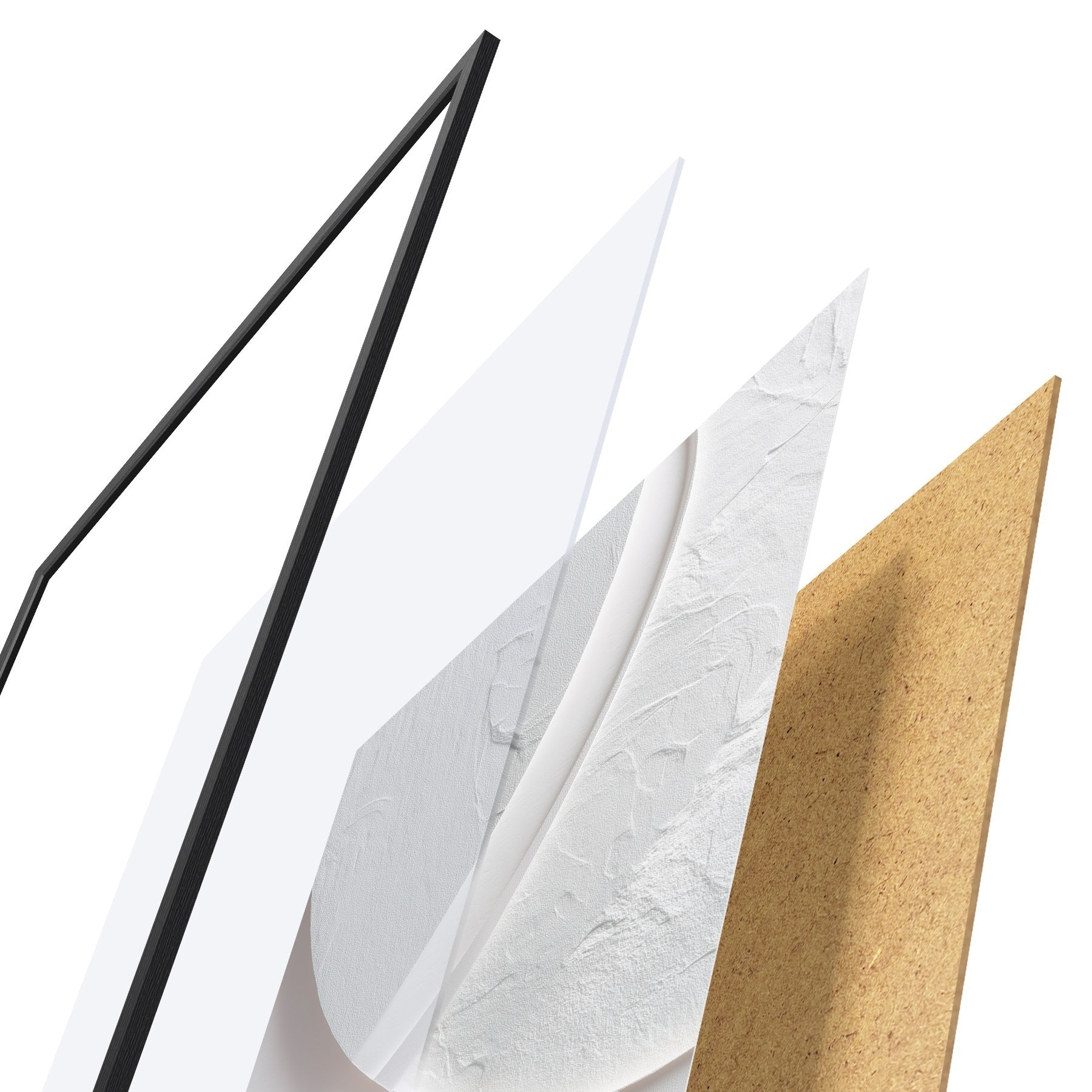 Plagát sa skladá z rámu, plexiskla, vytlačeného obrazu a podkladu z drevotriesky. Plagát možno okamžite zavesiť na stenu vďaka úchytom na zadnej strane.