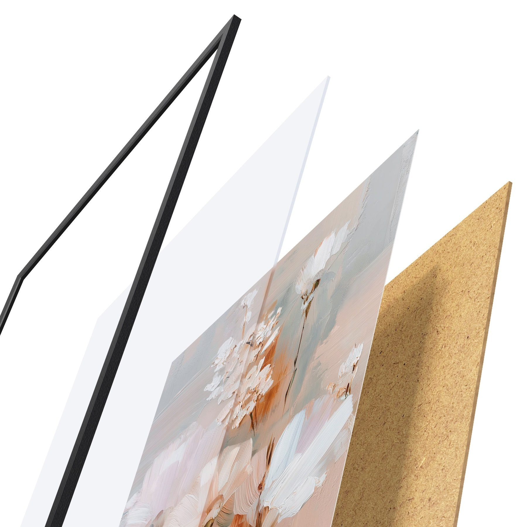 Plagát sa skladá z rámu, plexiskla, vytlačeného obrazu a podkladu z drevotriesky. Plagát možno okamžite zavesiť na stenu vďaka úchytom na zadnej strane.
